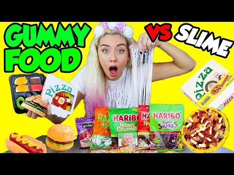 MIXING GUMMY FOOD INTO CLEAR SLIME! GUMMY FOOD VS CLEAR SLIME! | NICOLE SKYES